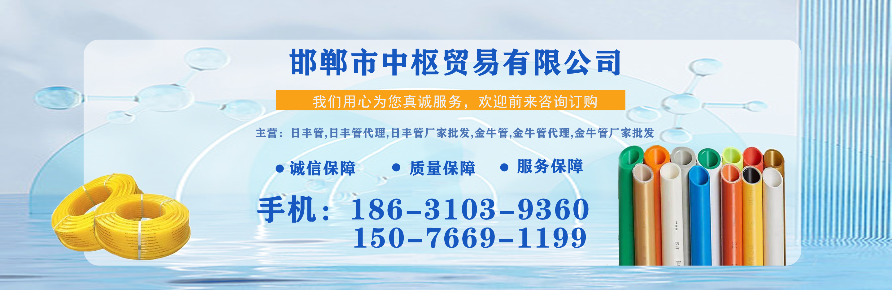 邯鄲市中樞貿(mào)易有限公司主營(yíng)日豐管,日豐管代理,日豐管廠家批發(fā),金牛管,金牛管代理,金牛管廠家批發(fā)等,質(zhì)量可靠,值得信賴(lài)!  我公司在產(chǎn)品行業(yè)積累了豐富的經(jīng)驗(yàn),具有嚴(yán)格的管理制度,同時(shí)引進(jìn)先進(jìn)的生產(chǎn)設(shè)備和生產(chǎn)技術(shù),一如既往的為廣大客戶(hù)提供質(zhì)優(yōu)價(jià)廉的產(chǎn)品。創(chuàng)辦多年來(lái)在市場(chǎng)上贏得較好的口碑,銷(xiāo)售網(wǎng)絡(luò)覆蓋全國(guó)各個(gè)省市及地區(qū)。  質(zhì)量為先,信譽(yù)為重,管理為本,服務(wù)為誠(chéng),我們將致力于這一經(jīng)營(yíng)理念,關(guān)注時(shí)代發(fā)展,用先進(jìn)的技術(shù),不斷創(chuàng)新求實(shí),以更優(yōu)的質(zhì)量,更好的服務(wù)來(lái)滿(mǎn)足我們的廣大客戶(hù)。  公司理念:勇于進(jìn)取、開(kāi)拓創(chuàng)...